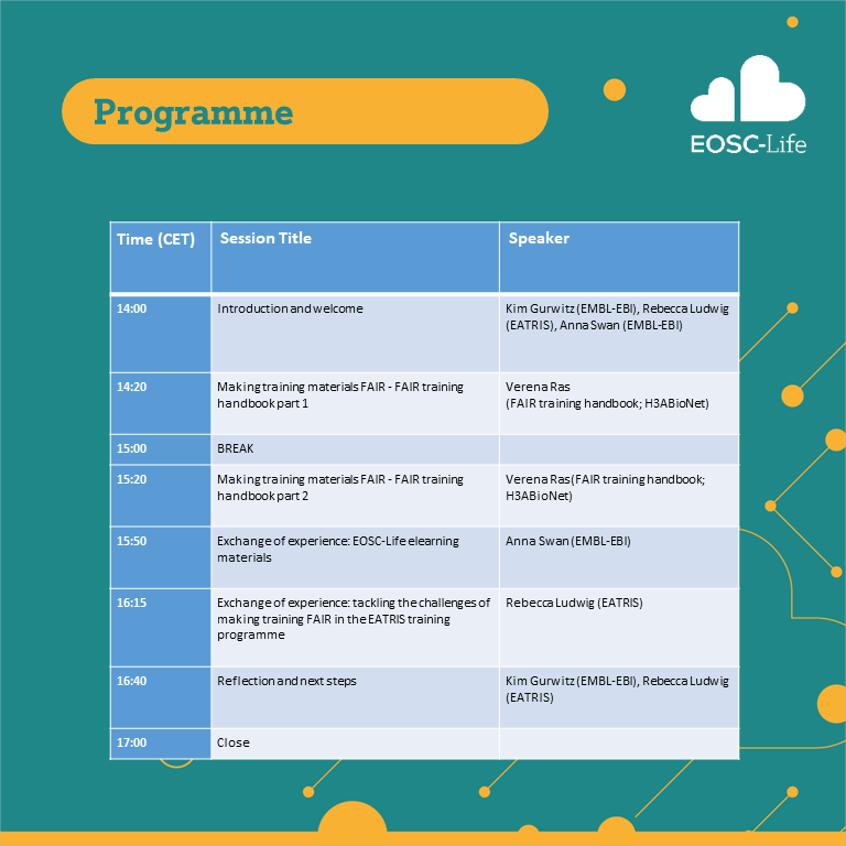 The organisers will provide practical information and resources to empower participants to FAIRify their training materials.